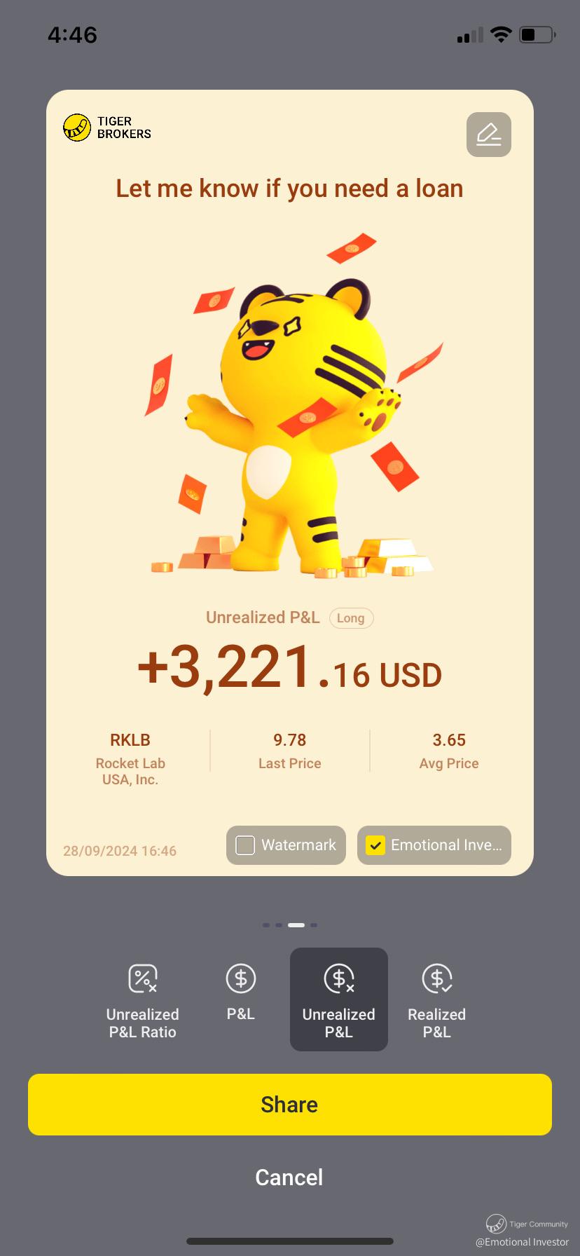 Well, September curse... i just say fobar! This month alone my $Rocket Lab USA, Inc.(RKLB)$ stock has doubled and ive made $ thousands selling rklb call options I brought days, weeks and a few months ago. Been with tiger since march this year, and quite frankly i love it here. I've transferred approximately $5000 from my other brokerage so far and my portfolio is now worth over $12,000.