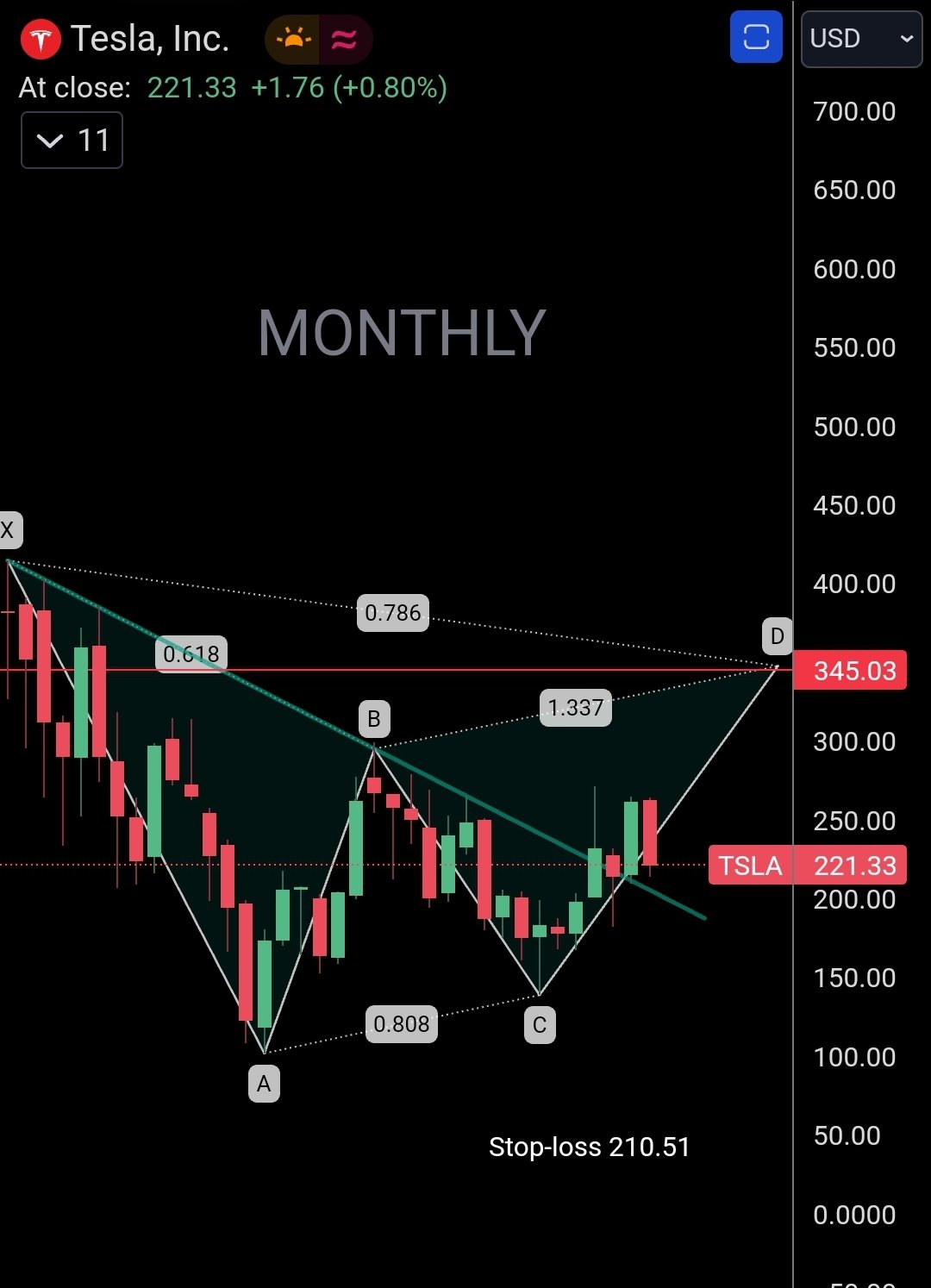 $Tesla Motors(TSLA)$ Potential gartley pattern still on track. Projected price target 345.
