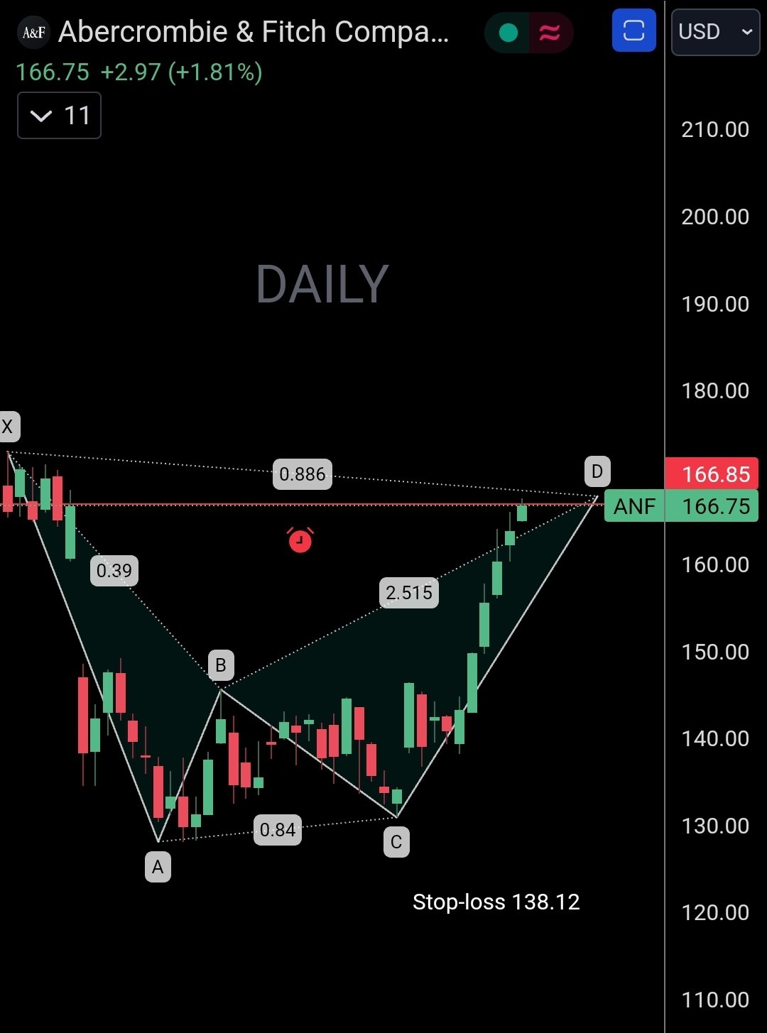 $Abercrombie & Fitch(ANF)$ Called it! Kaboom đĽ Projected price target of 166 hit precisely on ANF. Fantastic! đ đ đ