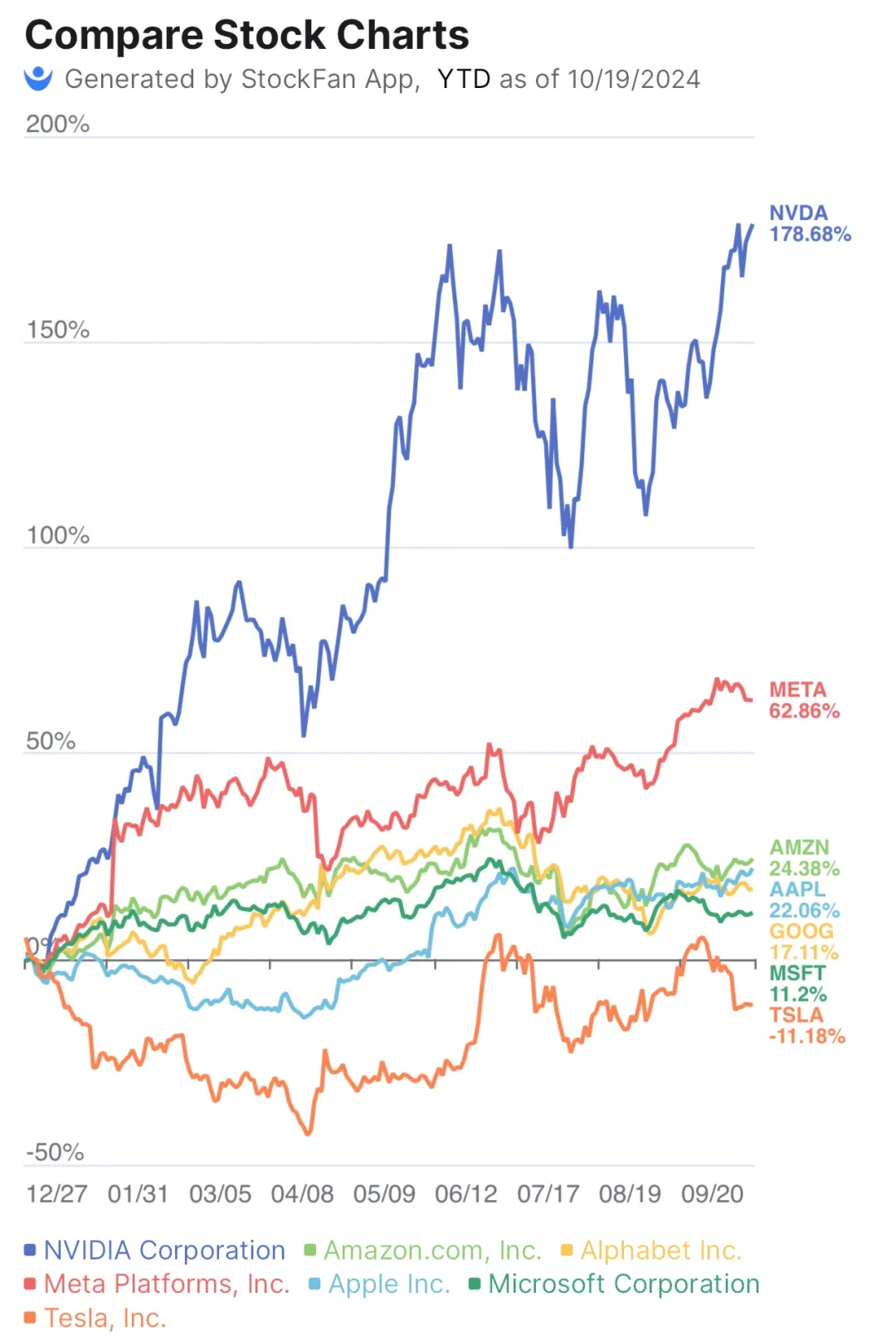 $NVIDIA Corp(NVDA)$ 's stock has surged nearly 180% this year, with a forward price-to-earnings (P/E) ratio of over 40 times. This has sparked intense debate on Wall Street about whether it's "too expensive." Among the top seven U.S. tech giants, NVIDIA has outperformed, leaving $Meta Platforms, Inc.(META)$ behind by more than 116%.