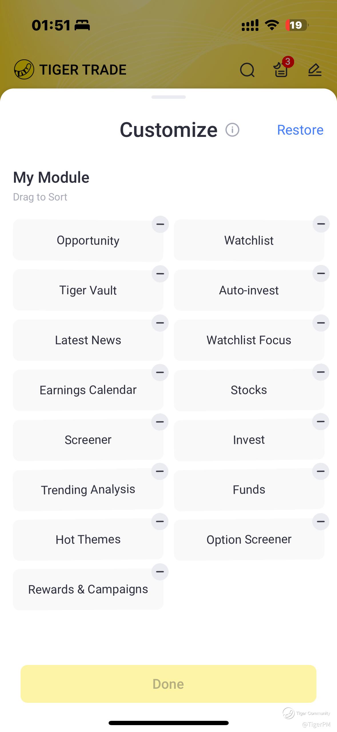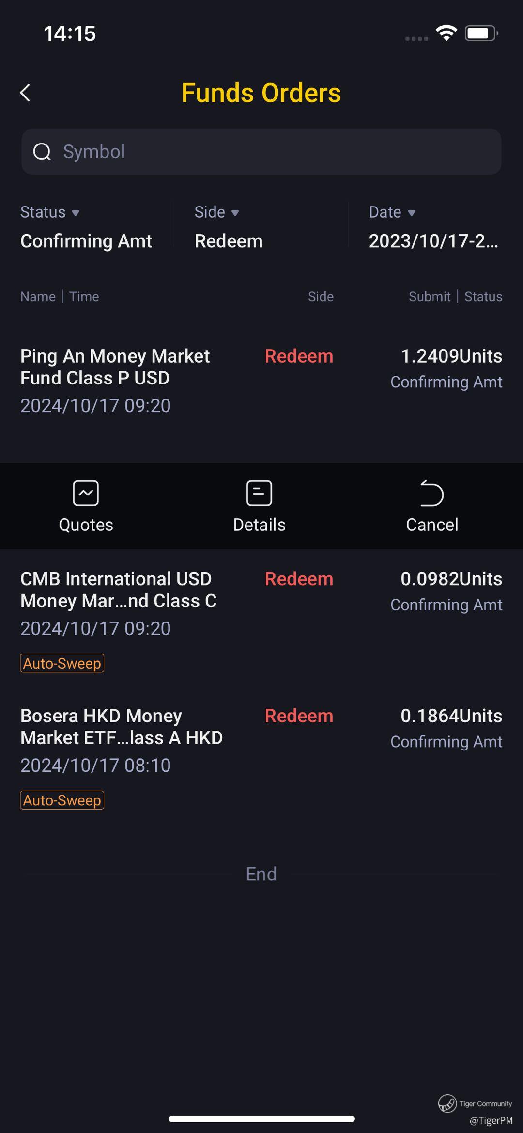 Redemption orders can be cancelled before the daily cut-off time. Auto-redeem of Tiger Vault due to opening positions or other reasons does not support order cancellation.