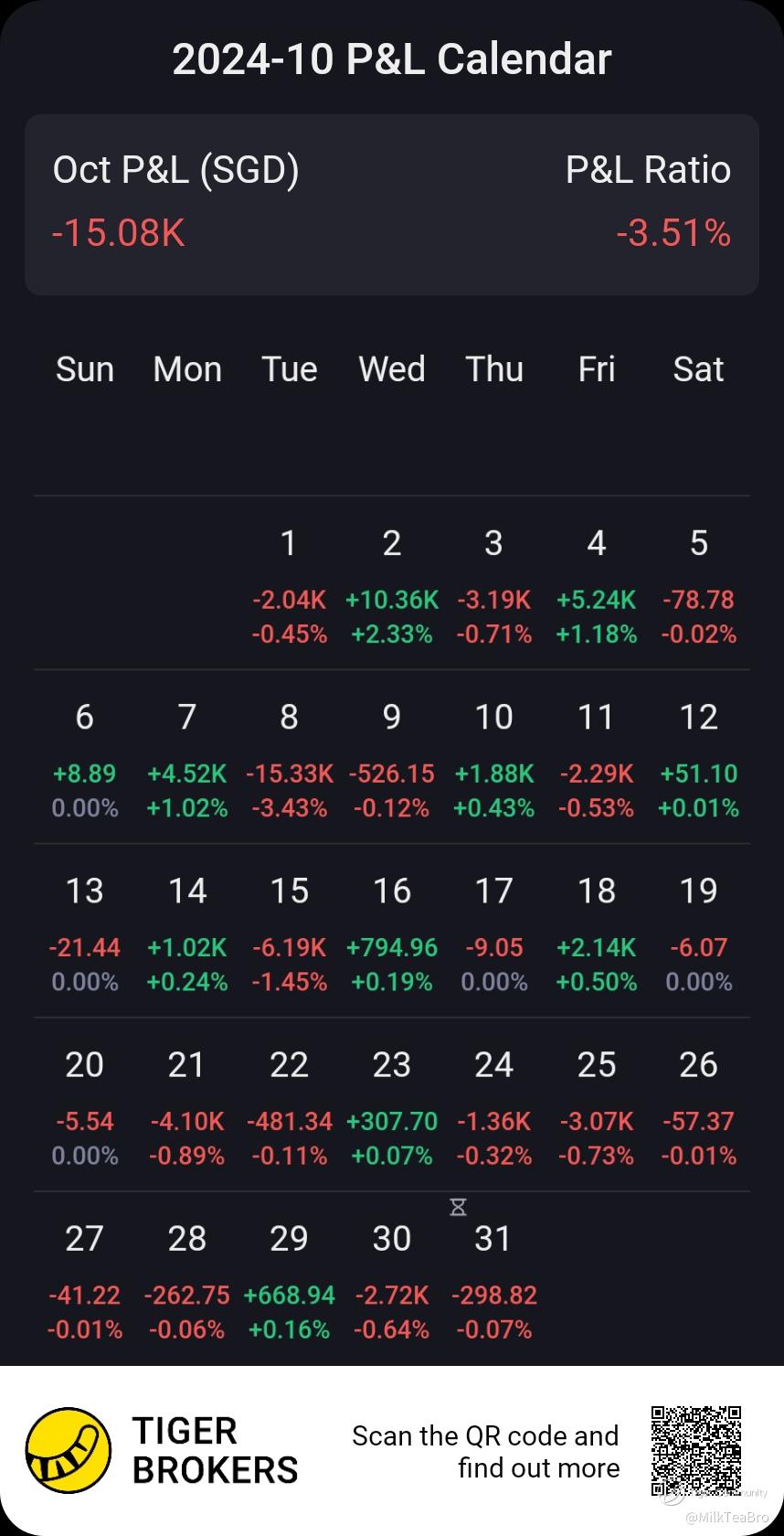 US Fed hinted slower rate cutting and HK stock pulled back. My portfolio wasn't spared, paper loss 15k, 3.5% in October 2024.