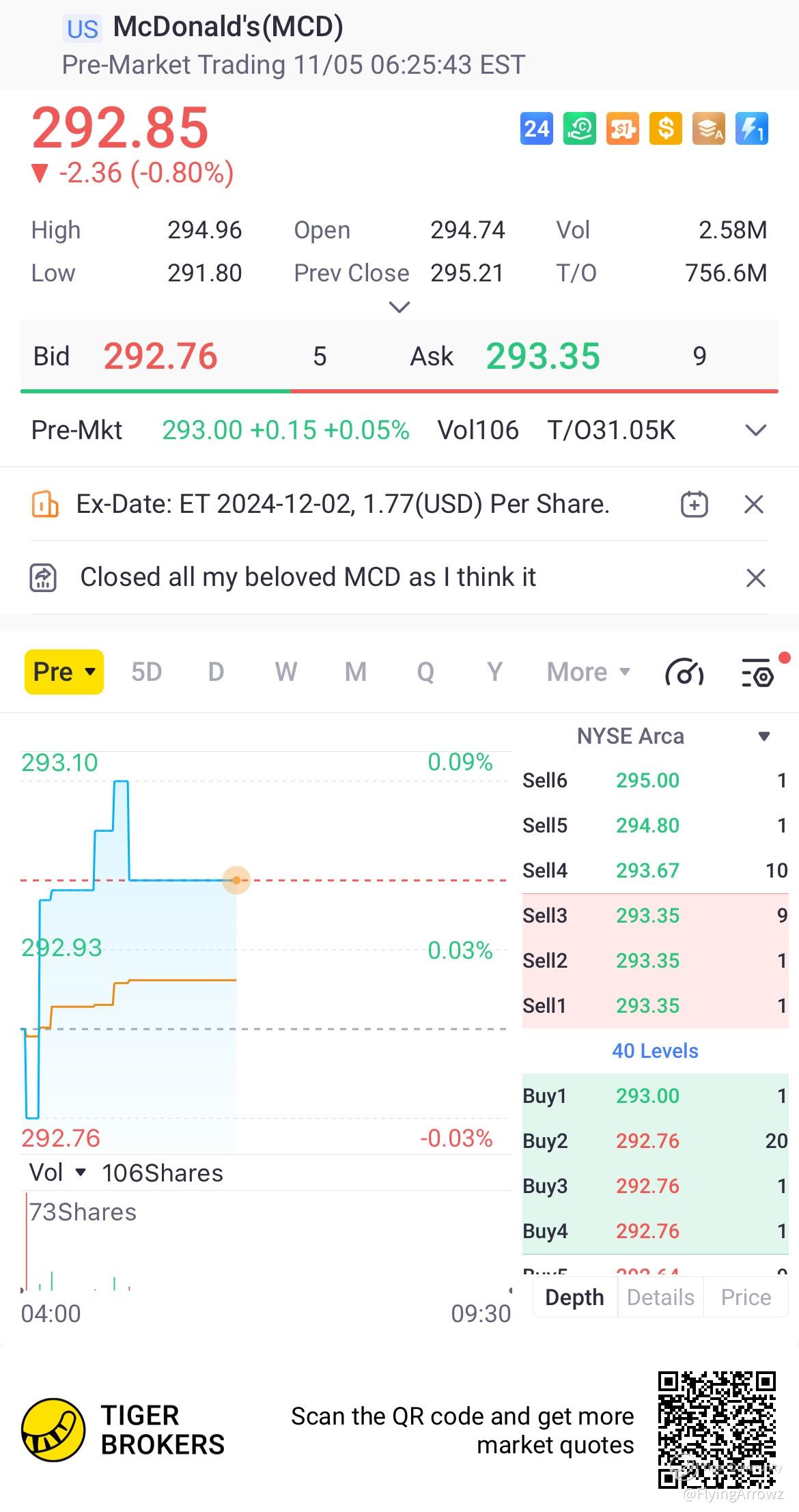 $McDonald's(MCD)$ It's not moving up and not going down no trades