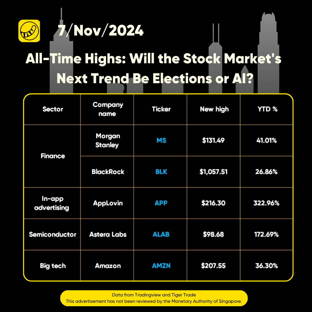 After Trump’s election victory yesterday, US stocks $.SPX(.SPX)$ hit all-time highs across the board. Plus, there are some standout stars from this earnings season that shouldn’t be overlooked. Check out this week’s 'New Highs' column!