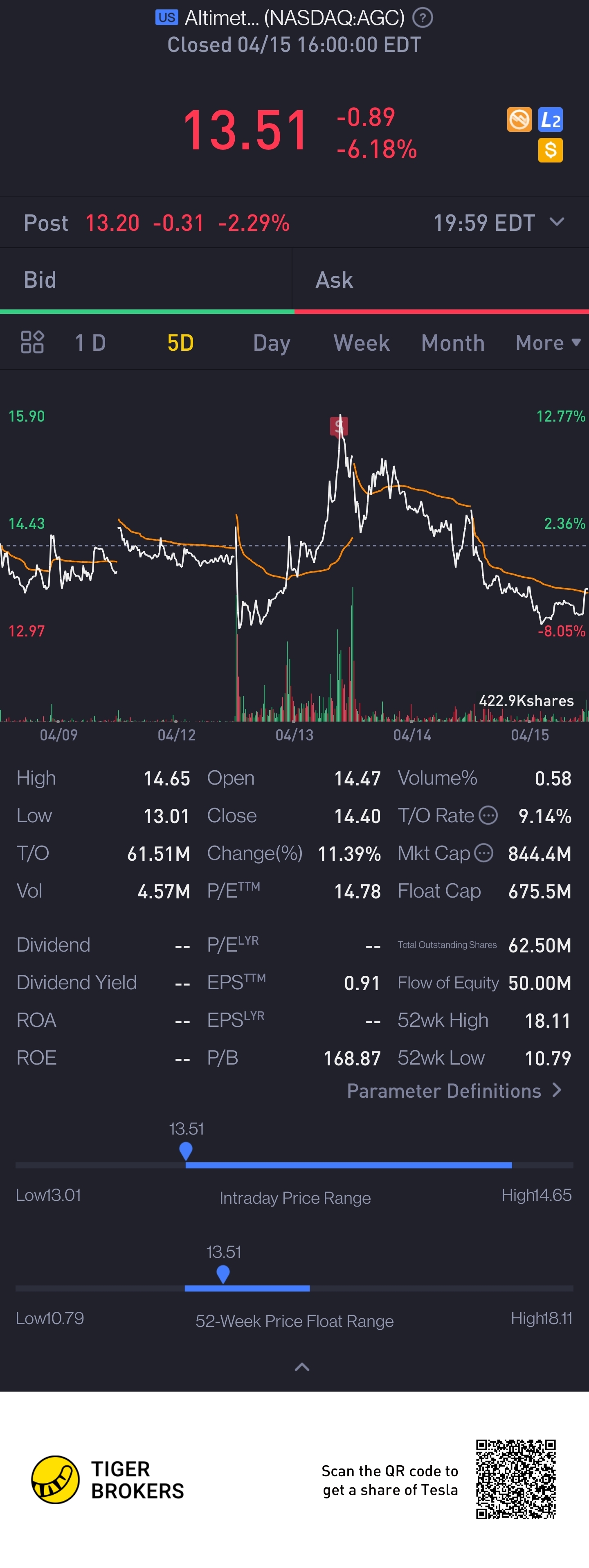 $Altimeter Growth Corp.(AGC)$A good company doesn't mean a good stock price. Grab might not just do ride hailing, food delivery, but that doesn't mean it's sum of parts valuation can suddenly command a huge premium. Too often people trade on ideals (think GME), sometimes it's important to be grounded and realistic. Just my 2 cents. I sold all at $15 and is looking to buy back at $12 just for upside when merger completes.