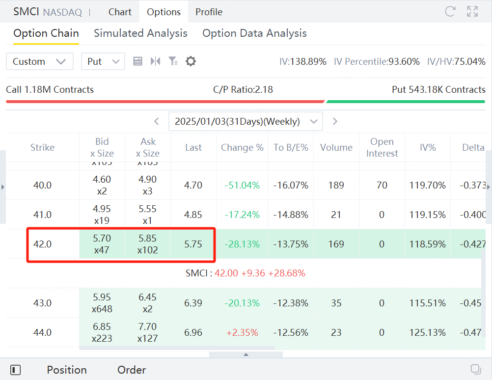 Maximum Loss: $375 (if SMCI ≤ $42)