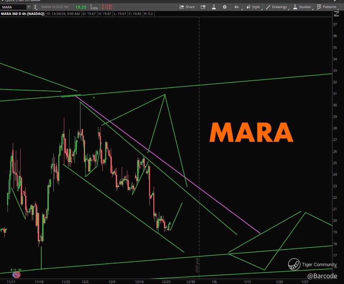 Support and Resistance Levels: The support level for Marathon Digital Holdings is around $17.77, and the resistance level is around $18.47.
