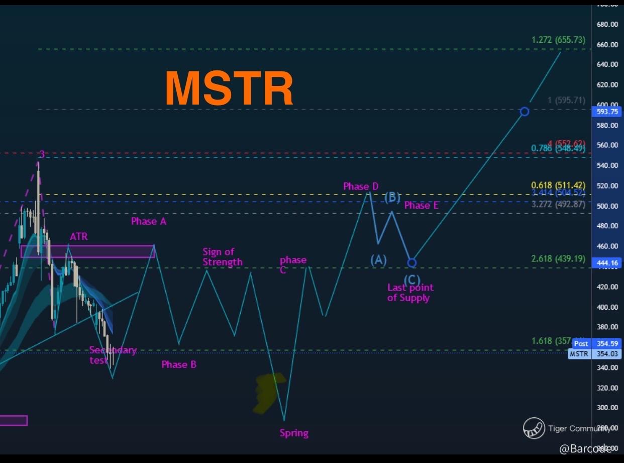 Support and Resistance Levels: The support level for MicroStrategy is around $325.64, and the resistance level is around $457.64.