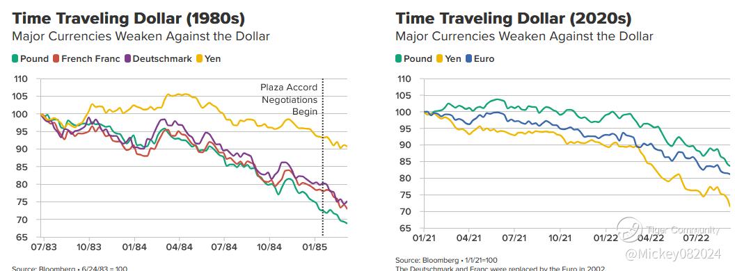 Some analysts speculate that Trump might attempt a modern equivalent of the 1985 Plaza Accord, where the U.S. pressured allies like Japan to appreciate their currencies. Such an approach would involve threatening tariffs to coerce countries like China and the EU into currency devaluation agreements. In that agreement, Japan was pressured into significantly appreciating the yen under the threat of heavy tariffs. While Japan complied, leading to a sharp slowdown in its economic growth, China is unlikely to follow a similar path.