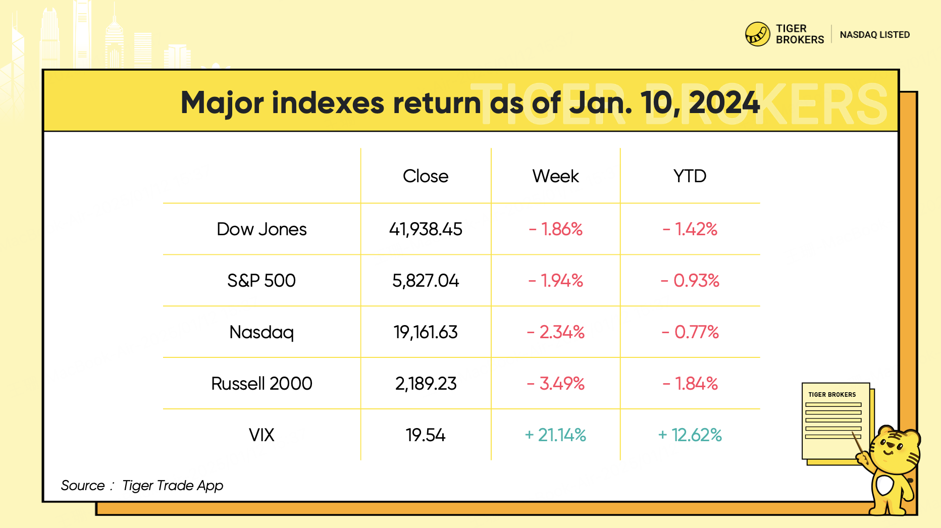 The major indexes posted back-to-back weekly losses, with the S&P 500 off 1.94% and the Nasdaq down 2.34%. The 30-stock Dow slid nearly 1.86% on the week.