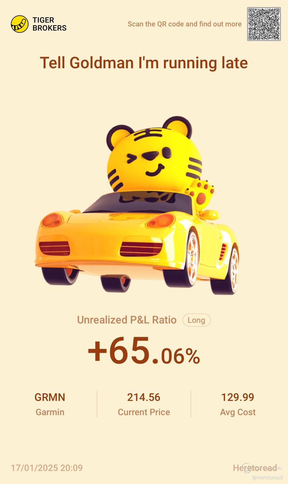 $Garmin(GRMN)$ one of the biggest winner in my portfolio last year with a 1 year return of 74% . Results are coming out on 19 February and am excited to see the results .