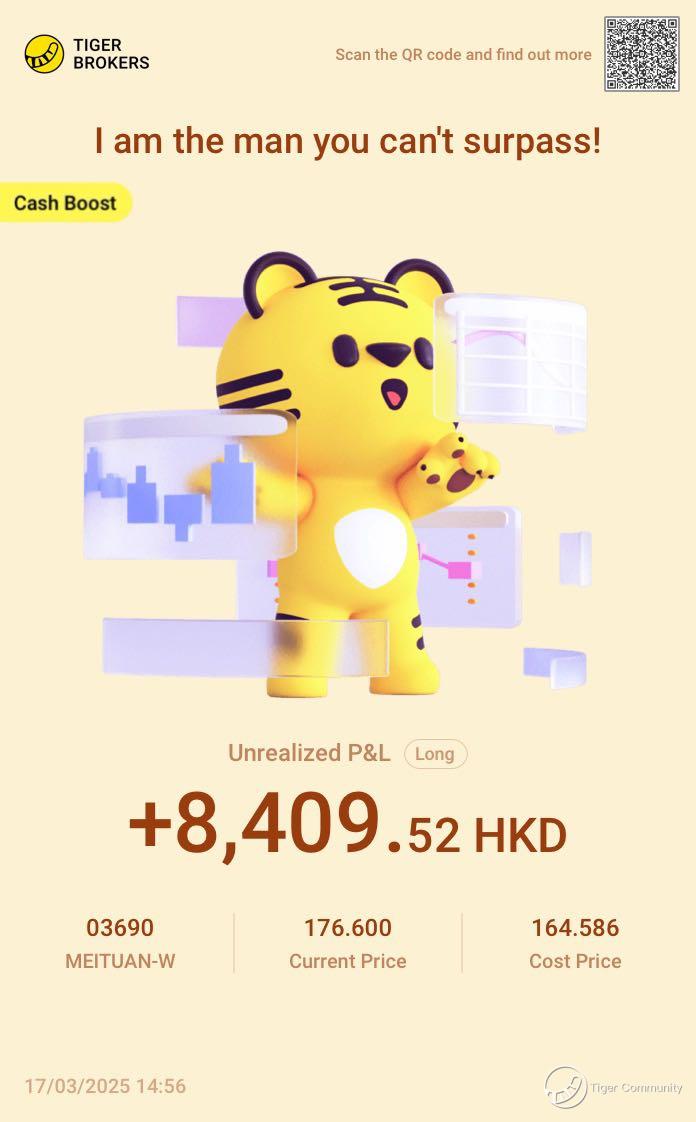 $MEITUAN-W(03690)$ The recent momentum has been strong, with the latest price at 177.9 yuan, up 2.6%, and reaching as high as 178.6 yuan at 11:16 AM.