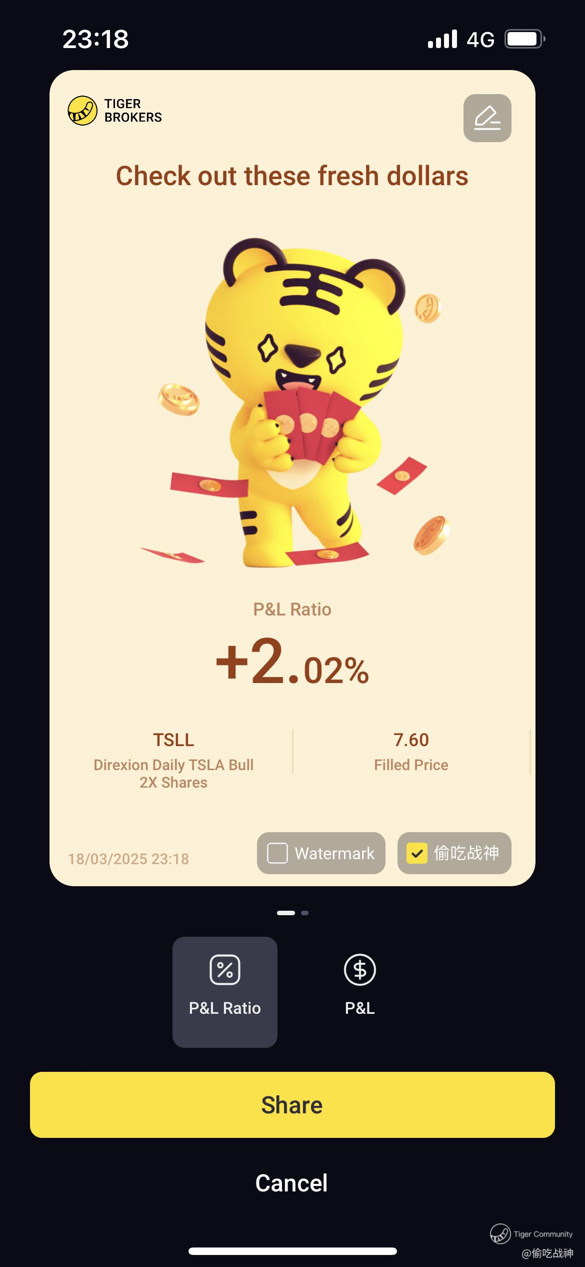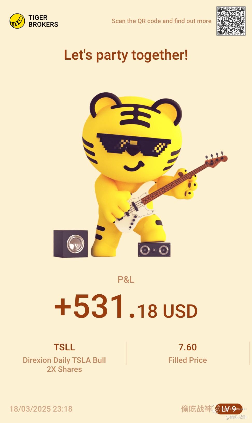 $Direxion Daily TSLA Bull 2X Shares(TSLL)$ T+0 Sold off at 2% as it hit my interval trading. dont really wanna be too engrossed as it is only Tuesdays folks Still many weekdays to go.