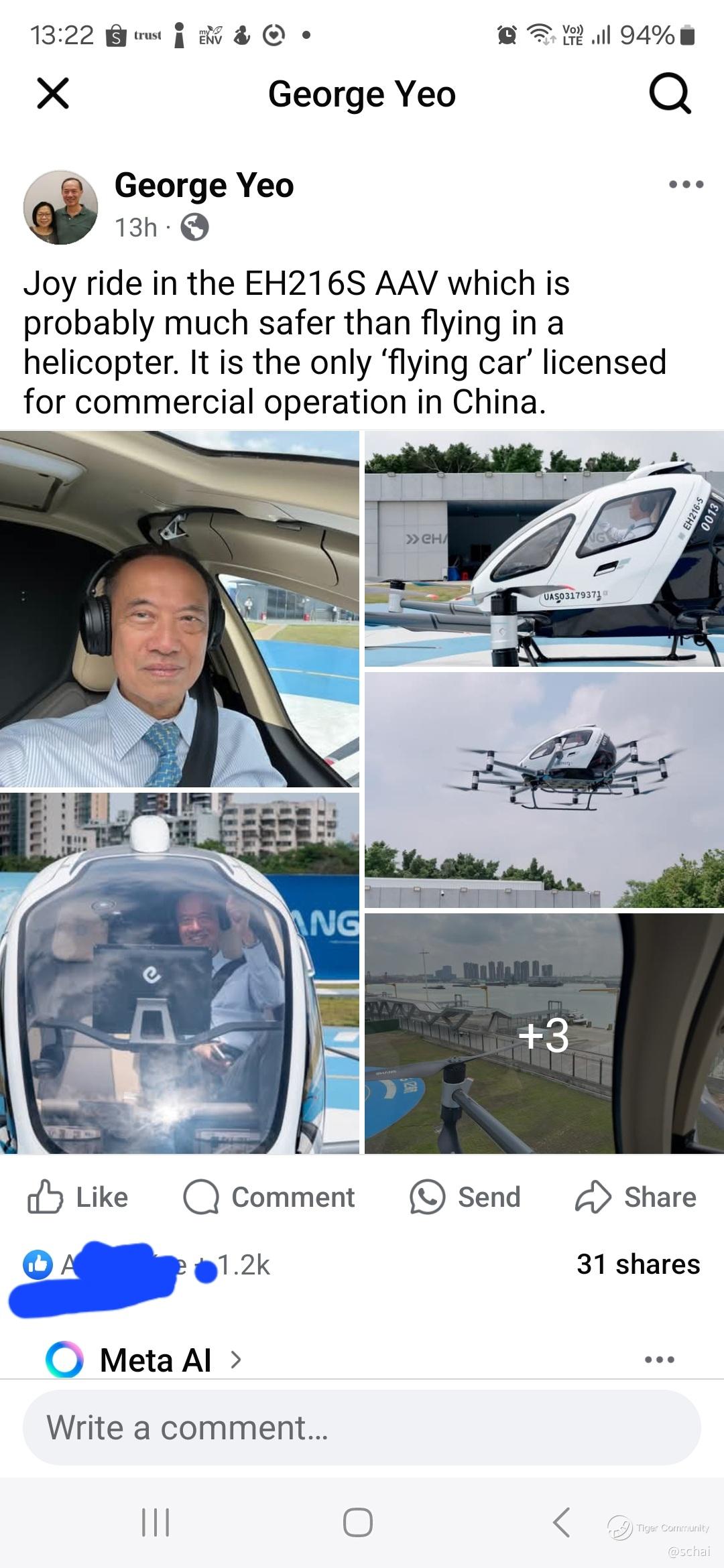 $EHang Holdings Ltd(EH)$ Singapore former foreign minister flew EH216