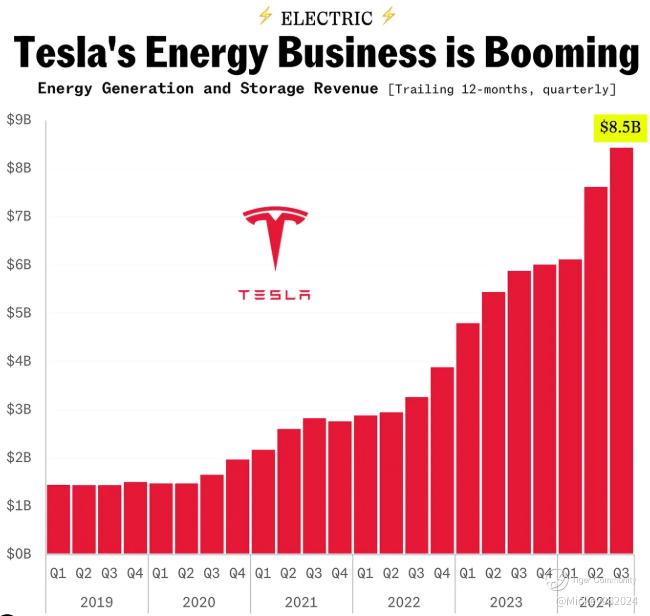 Tesla’s Megapack product, a large-scale battery storage solution, is seeing soaring demand from utilities and large energy users. As the world transitions toward renewable energy, grid storage has become a critical bottleneck. Solar and wind energy are intermittent by nature, meaning storage solutions are essential for ensuring a stable, reliable power supply.