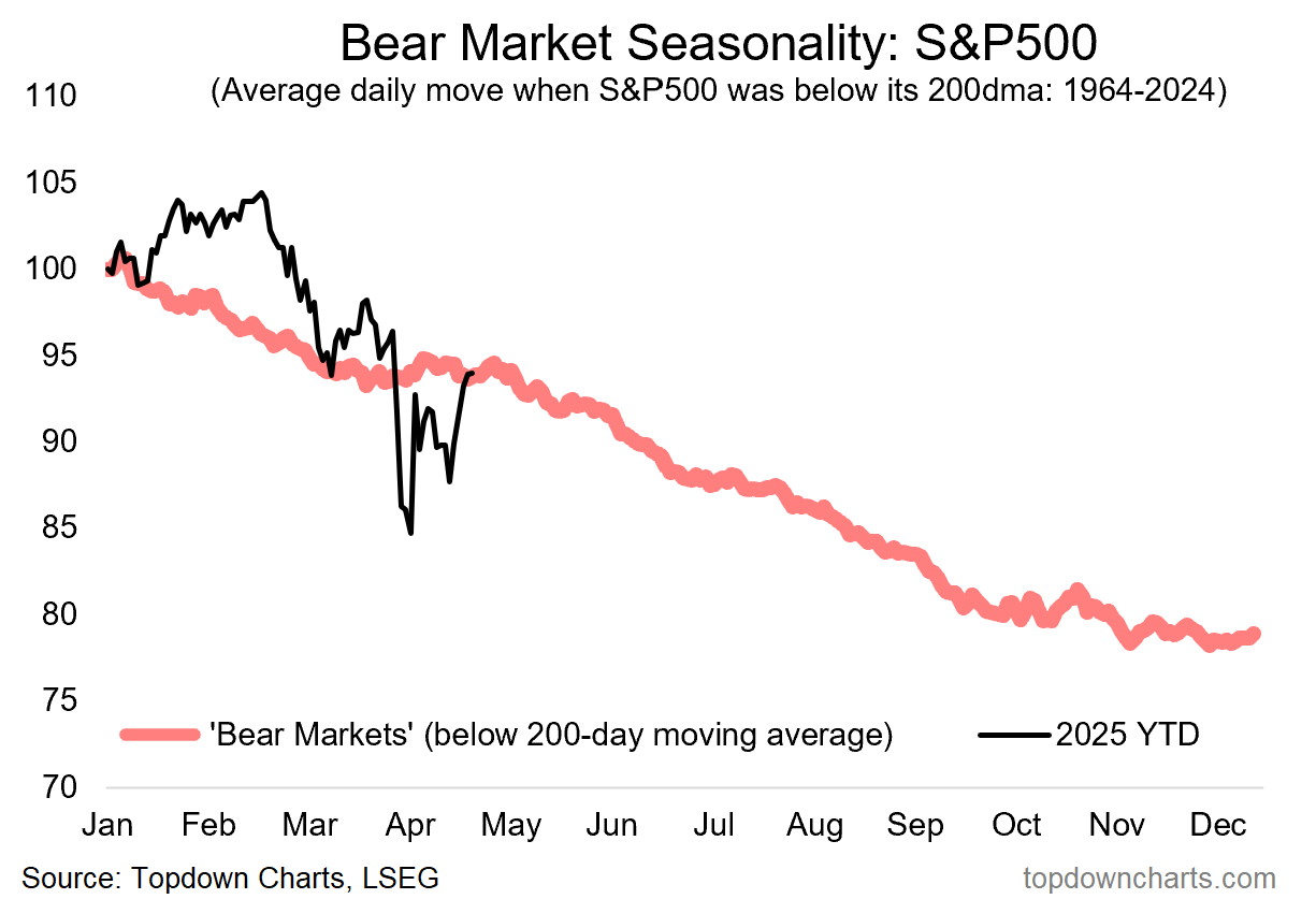 Interestingly, the current rebound in the stockmarket comes at a time of seasonal strength during down markets — you tend to see a period of consolidation and rebound around April/early-May… with downward momentum picking up pace from May onwards.