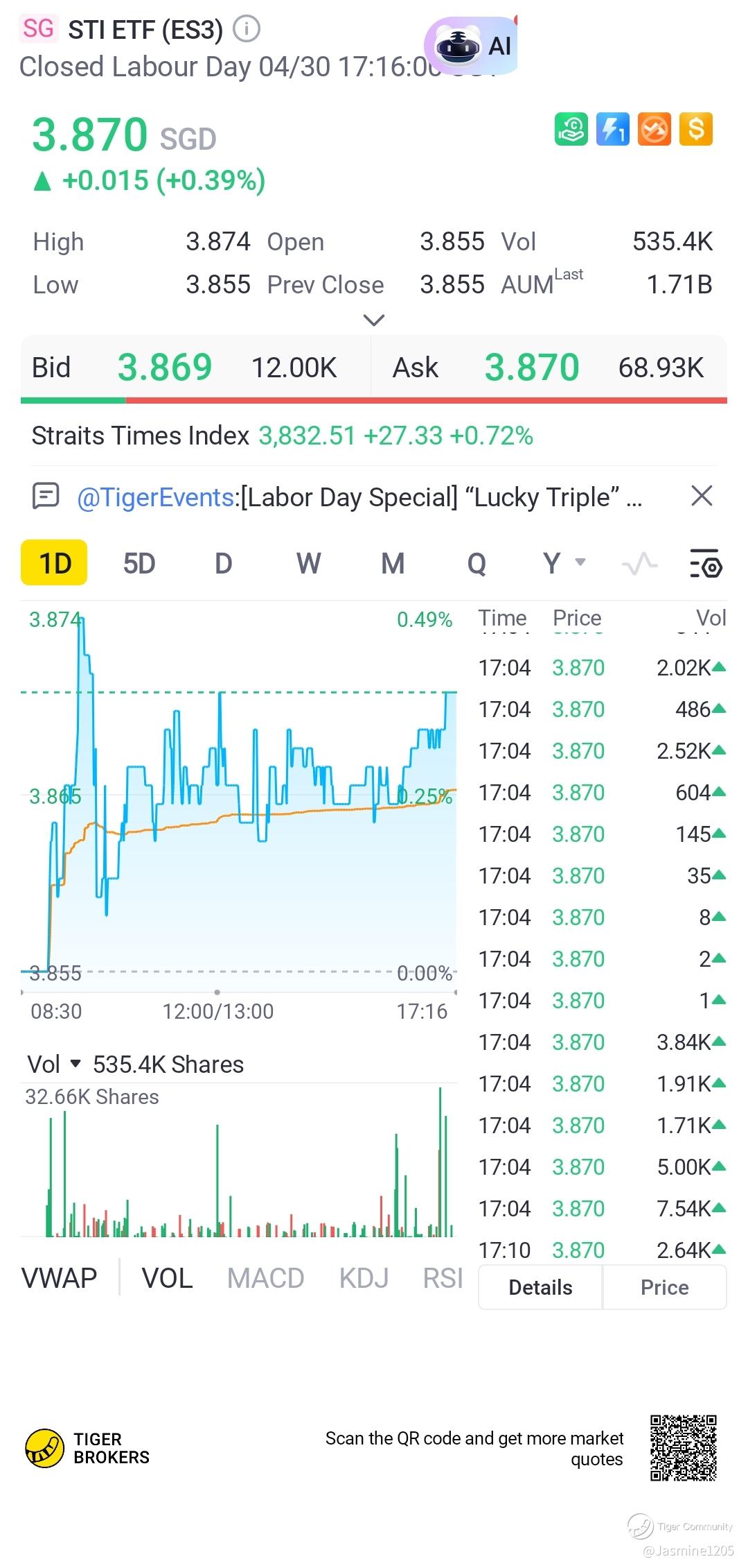 $STI ETF(ES3.SI)$ how high more can it go? $5?