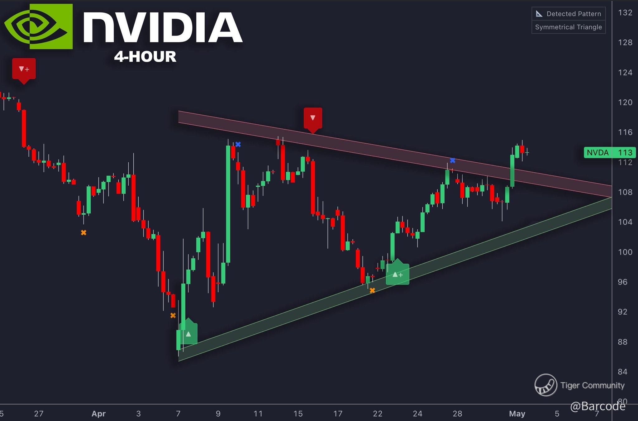 I watched this one unfold in real time. The symmetrical triangle on Nvidia’s 4H chart didn’t just resolve, it ruptured, clean through the $112 ceiling. It wasn’t just technical, it was telegraphed by a $4 million call sweep that landed minutes before the surge. That wasn’t noise. That was signal with capital letters.