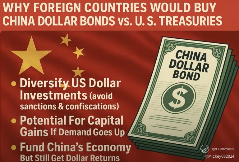 Diversification Away from Washington: For many emerging economies—especially BRICS members—Chinese bonds offer a way to stay in the U.S. dollar system without being overly exposed to U.S. political risk, sanctions, or potential asset seizures. Buying Chinese dollar bonds is a hedge.