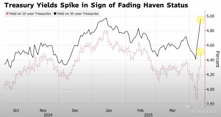 At the same time, the U.S. finds itself trapped in a volatile debt spiral. Treasury yields spiked recently, with the 10-year surpassing 4.5% and the 30-year briefly breaching 5%. That reflects deep instability in U.S. debt markets—the only avenue left for Washington to fund its growing deficit.