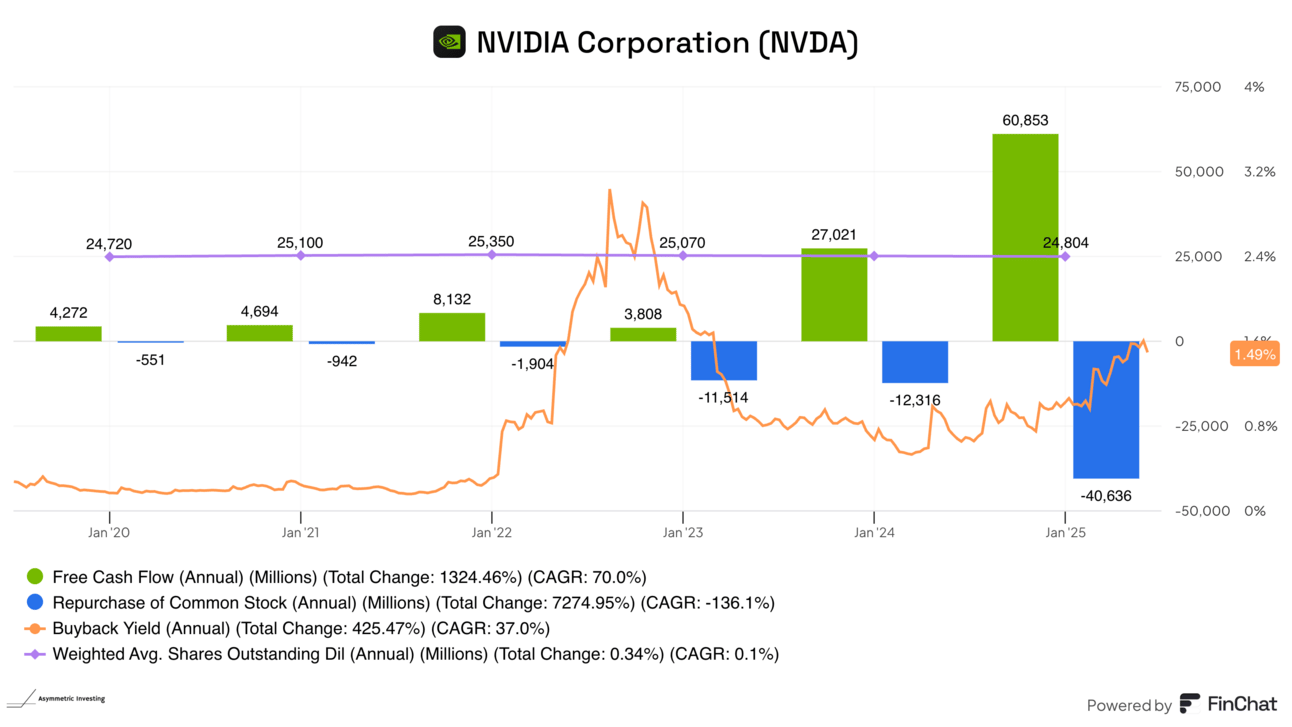Value is what most companies get wrong about buybacks. For example, $NVIDIA(NVDA)$ has spent over $65 billion on buybacks since 2020, and the share count is up!