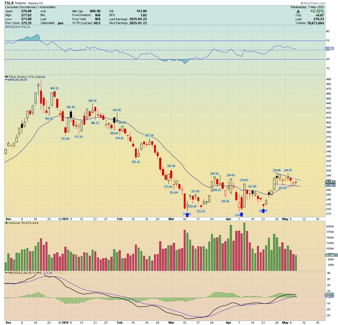 $Tesla Motors(TSLA)$ After a 55% collapse from December highs, the stock appears to be coming out a bottoming pattern in the shape of a Triple Bottom. Price action is creating a mini bullish flag here on the 20 day EMA. This could breakout at any moment. Targets $325