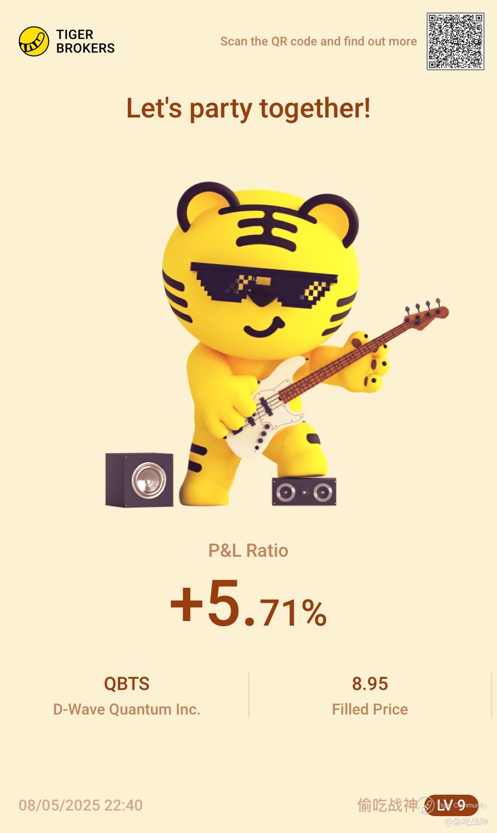 $D-Wave Quantum Inc.(QBTS)$ I've sold and close 700 shares off Prime at approx 350 USD profit. I think it will go higher. Profit covered my losses at TQQQ.