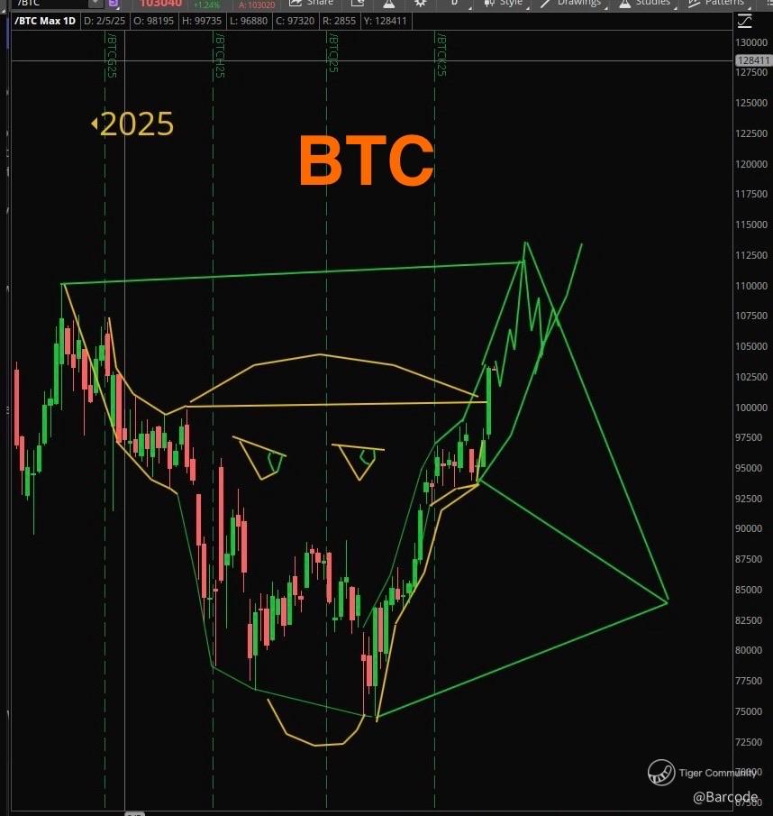 π BTCβs explosive breakout to $103K+ has confirmed the bullish eye pattern from the βminotaurβ formation on the daily. Itβs not just a chart, itβs a war cry. The apex isnβt in yet, Bitcoinβs charging toward $110K and beyond.