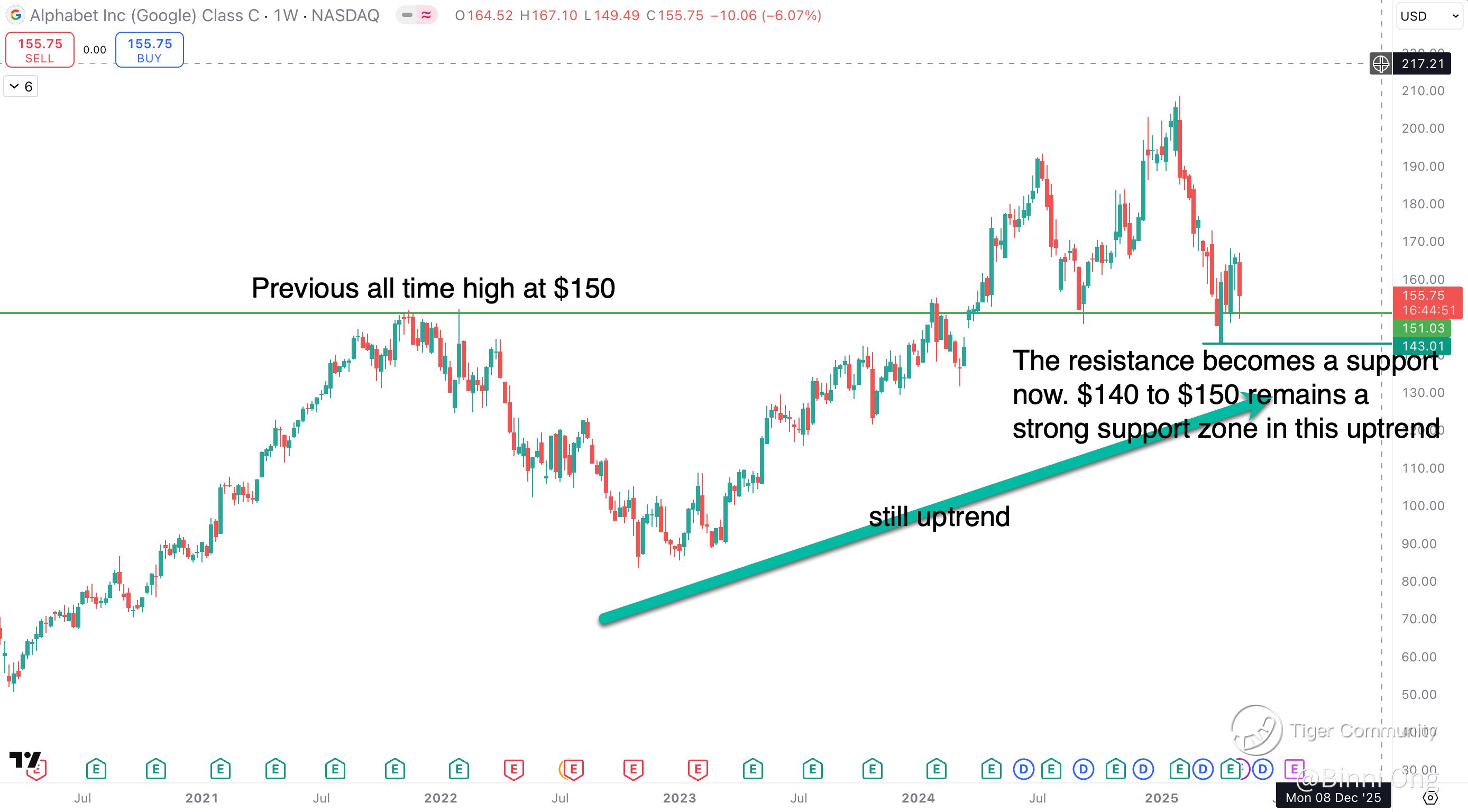 Supported at 150: If $Alphabet(GOOGL)$ bounces from 150 with rising volume, consider bullish DLCs (e.g. $ALPHAB 3xLongSG261006(USJW.SI)$ )