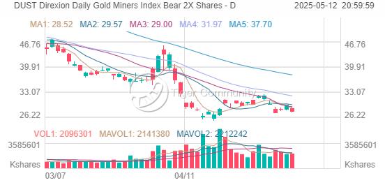 Basic Information: DUST provides a 2x inverse return on the NYSE Arca Gold Miners Index. This index mainly includes the stocks of global gold and silver mining companies, so DUST's performance is closely related to the movement of gold mining stocks.