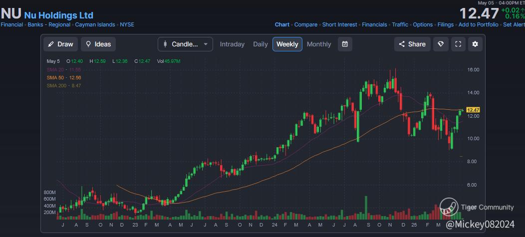 It’s also helpful to look at the company’s trading history to get a sense of where the stock price stands relative to its recent performance. Over the past 52 weeks, NU Holdings has traded as low as $9.1 and as high as $16.15. With the current price sitting at $12.41, the stock is trading near the midpoint of its 52-week range. This means that, while the stock is not at its 52-week low, it is still significantly lower than its 52-week high, which reinforces the view that the stock is currently undervalued.
