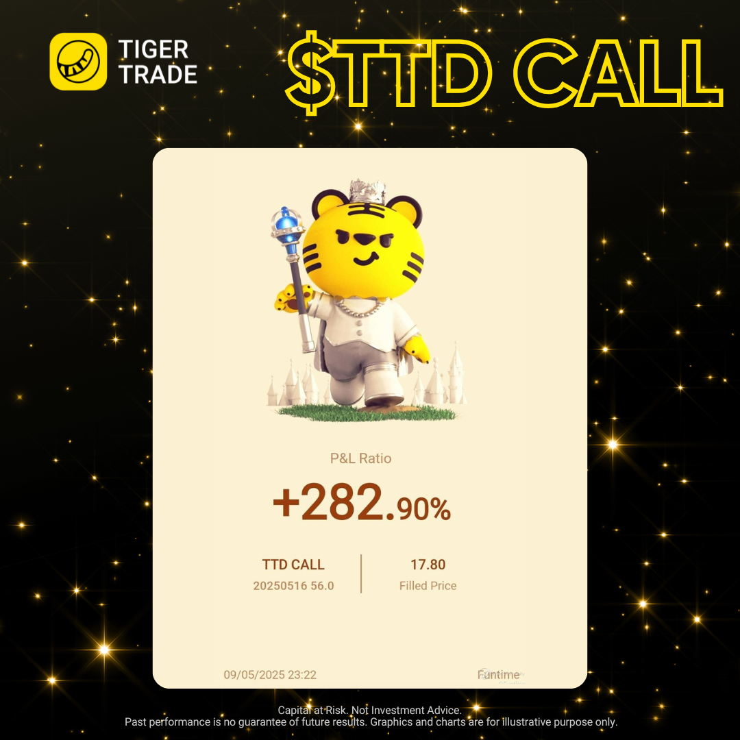 🎉 Huge congrats to @Star9811 for achieving an impressive 282.92% return by buying $Trade Desk Inc.(TTD)$ call options.