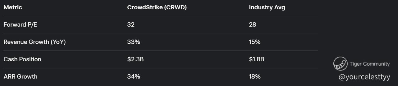 This table highlights CrowdStrike’s outperformance—its growth outstrips the sector, yet it trades at a modest premium.