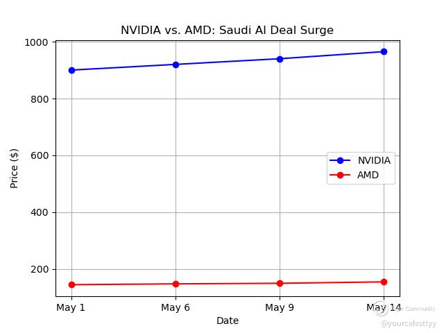 The AI revolution just got a Middle Eastern twist, with Saudi Arabia’s Humain partnering with NVIDIA and AMD to build cutting-edge AI factories. NVIDIA’s supplying 18,000 of its Blackwell chips for a 500-megawatt data center, while AMD’s committing $10 billion to deliver high-performance chips and software for a sprawling network across Saudi Arabia and the U.S. Both stocks surged—NVIDIA up 6.4% and AMD up 4%—but which one’s got the edge in this $10 billion AI gold rush? Are you kicking yourself for selling NVIDIA at $120? Let’s break it down and pick a winner.
