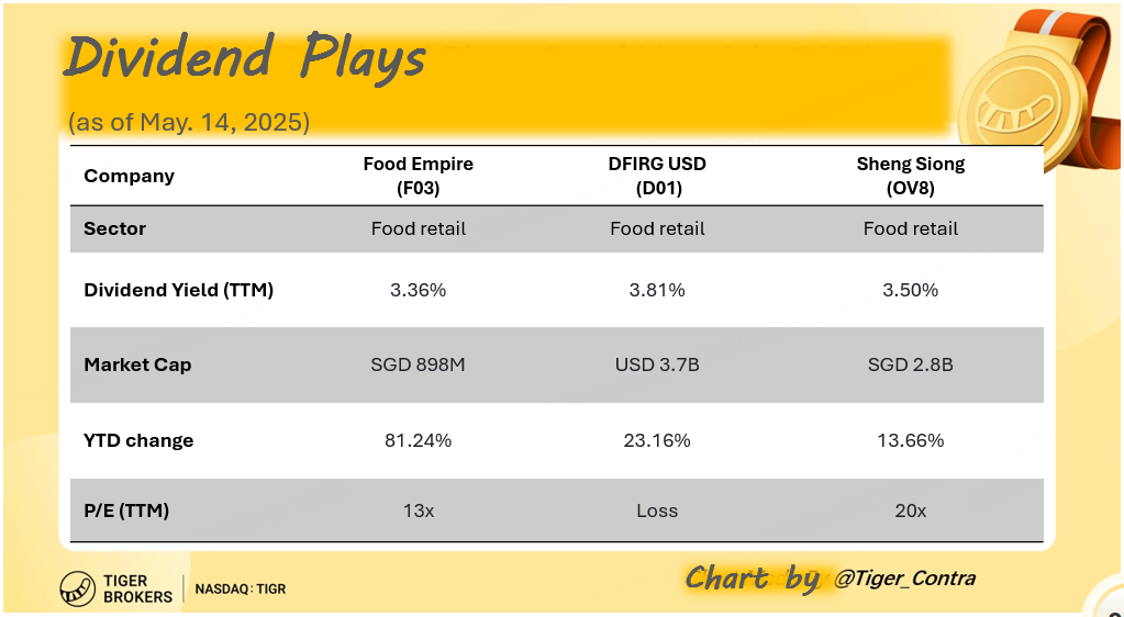 💹 $Food Empire(F03.SI)$/ $DFIRG USD(D01.SI)$ /$Sheng Siong(OV8.SI)$: The momentum in supermarket consumption is strong, benefitting local food retailers in Singapore.