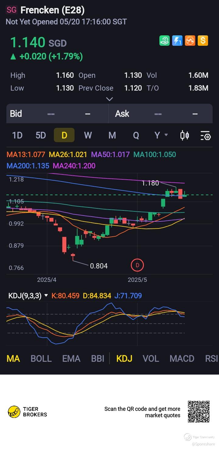 Frencken - 1st quarter results update is out. Total Revenue isvup 11.5 percent to 215.8m, Gross profit margin is up 1.1 percent to 14.8 percent. Net profit is up 12 percent to 10m.