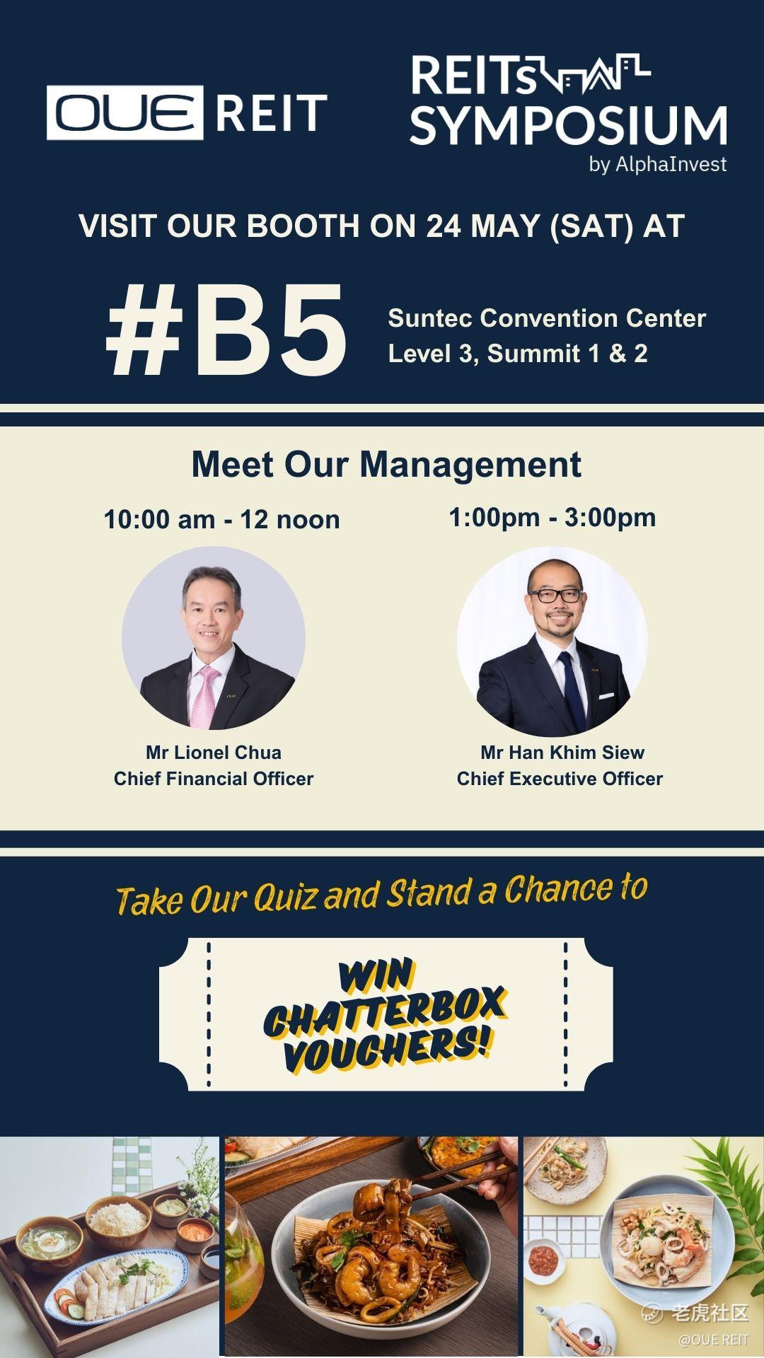 OUE REIT is back at the REITs Symposium 2025 this Saturday (24 May) at the Suntec Singapore Convention & Exhibition Centre!