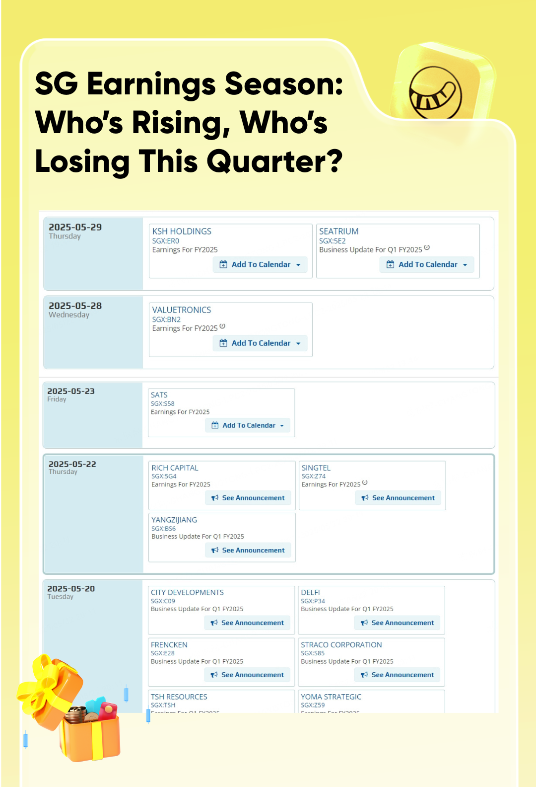 Post directly in the topic: SG Earnings Season Wrap-Up: Who Stands Out, Who Falls Short? or leave your comments on this post to win tiger coins~