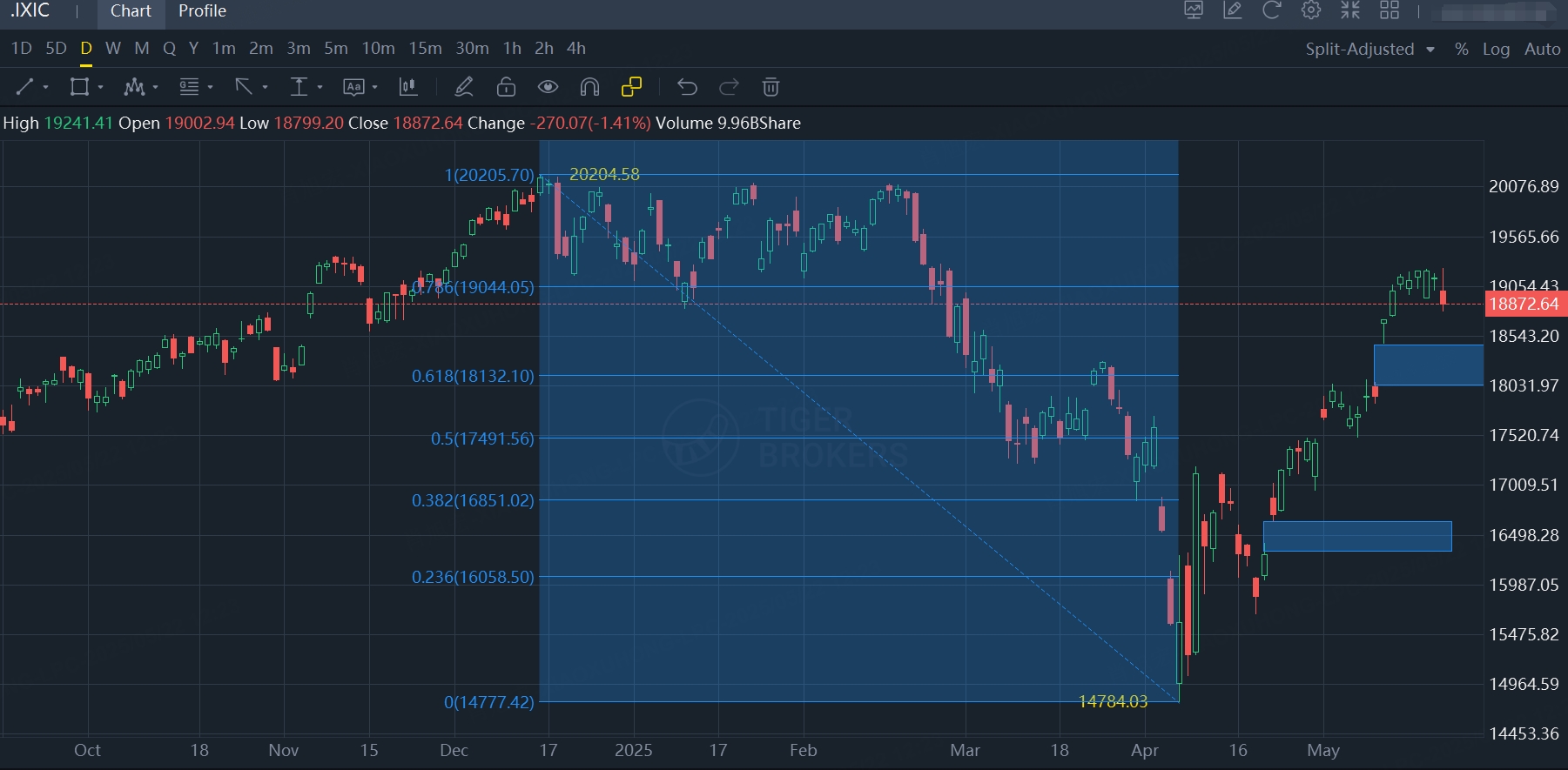 $NASDAQ(.IXIC)$ There are also two gaps below, and the Fibonacci exponential series fluctuates between 0.618 and 0.786. Continue to observe the support, otherwise there will be great pressure to fill the down gap.
