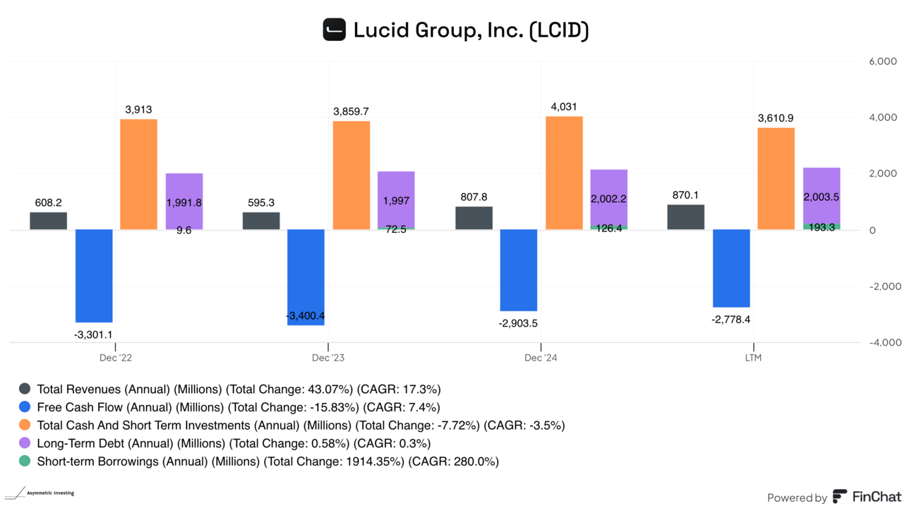 Lucid is in an even worse spot, with very little revenue and cash drying up quickly.