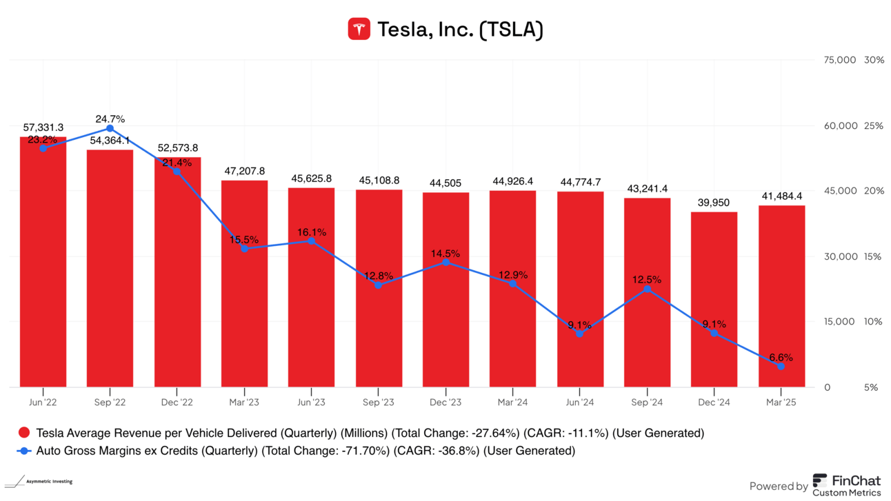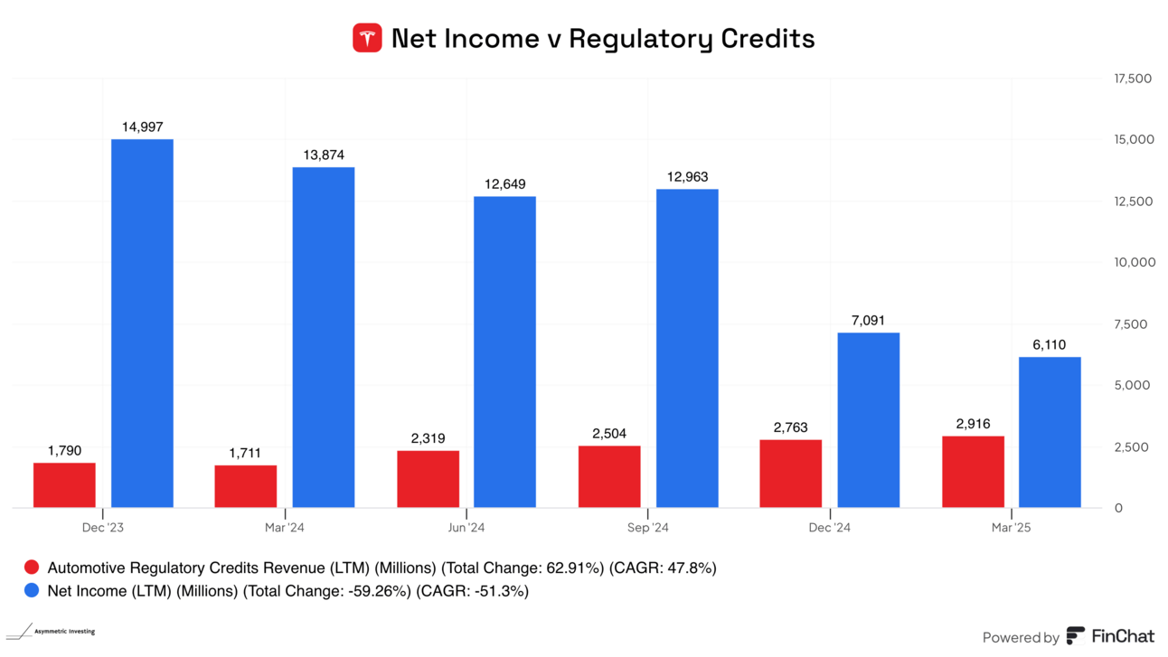 Regulatory credits have also helped Tesla remain profitable while net income has plunged in this time. Without regulatory credits, Tesla wouldn’t have made money in Q1 2025, so the writing is on the wall.