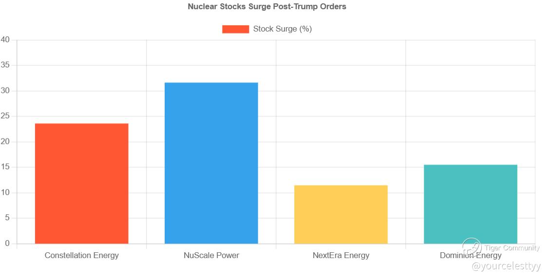 The nuclear energy sector is on fire, with stocks like Constellation Energy ( $Constellation Energy Corp(CEG)$ ) and NuScale Power ( $NuScale Power(SMR)$ ) soaring up to 40% after President Trump signed executive orders to turbocharge nuclear development. These orders, aimed at slashing regulations and fast-tracking reactor construction, have sparked a 30% rally across the sector, fueled by optimism over nuclear’s role in powering AI data centers. Wedbush analysts are bullish, citing nuclear’s reliability as a game-changer for AI’s energy demands. But can this rally keep climbing, or is it a flash in the pan? Is nuclear energy the next quantum leap in tech? Let’s dive into the catalysts, risks, and what’s next for investors.