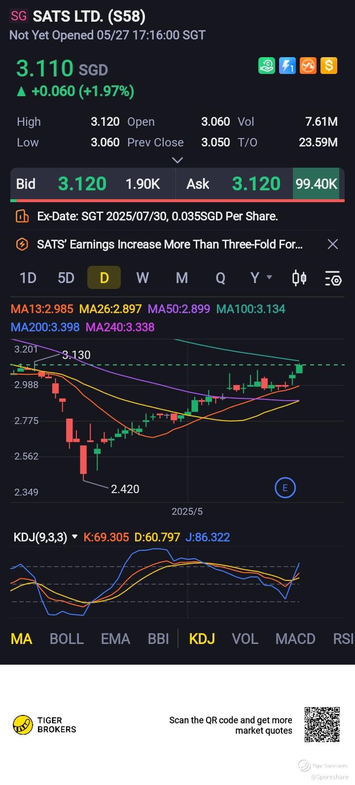 SATS - FY results is out. Net profit is up 332 percent to 248.3m. Proposed Final dividend of 3.5 cents vs 1.5 cents last year.