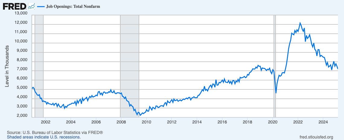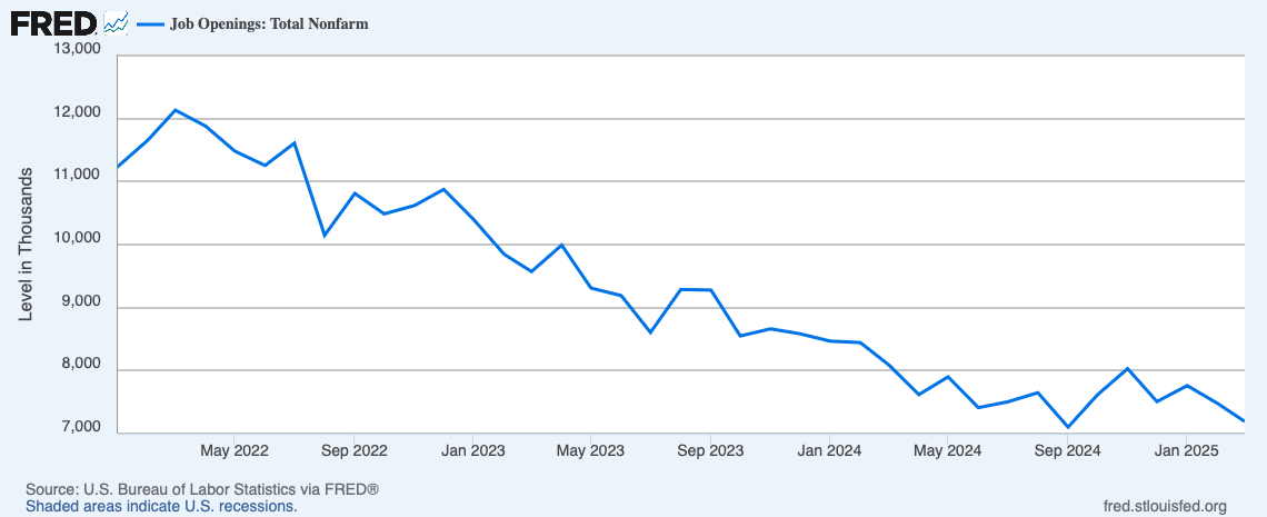 On an absolute basis, we’re back to the level of job openings as in 2019, but the trend doesn’t look good.