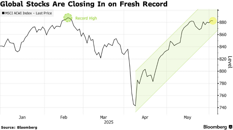 The MSCI All Country World Index by Morgan Stanley is now just 0.5% below its all-time closing high of 887.72, set on February 18. Following a low in April—after former U.S. President Trump announced new tariffs—the index has since rebounded 19%.