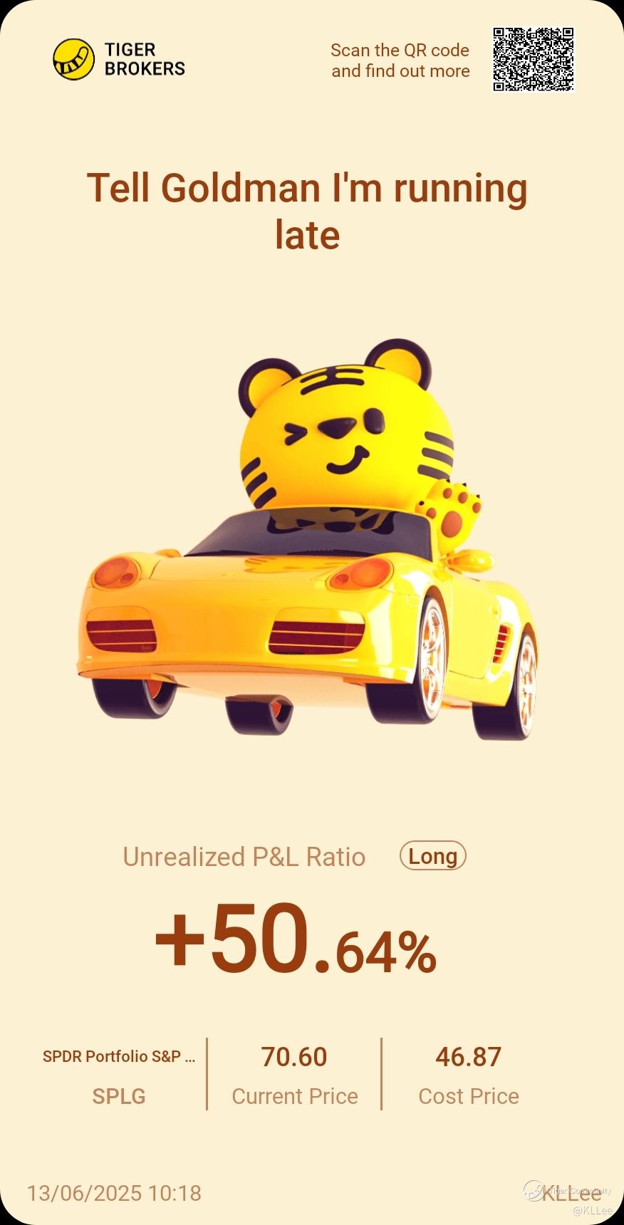$SPDR Portfolio S&P 500 ETF(SPLG)$ Celebrate small wins, be grateful on the bull ride. 🥳