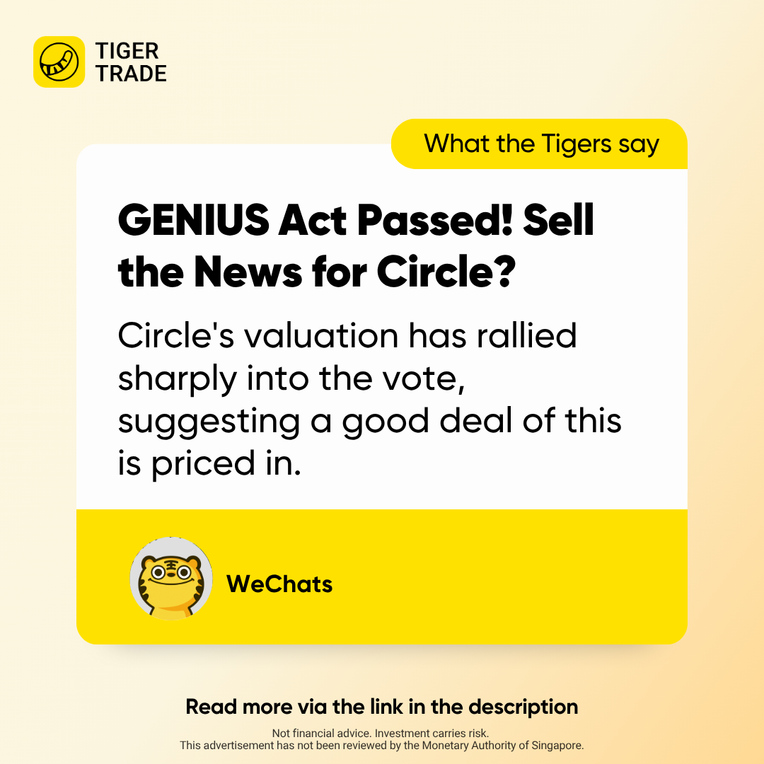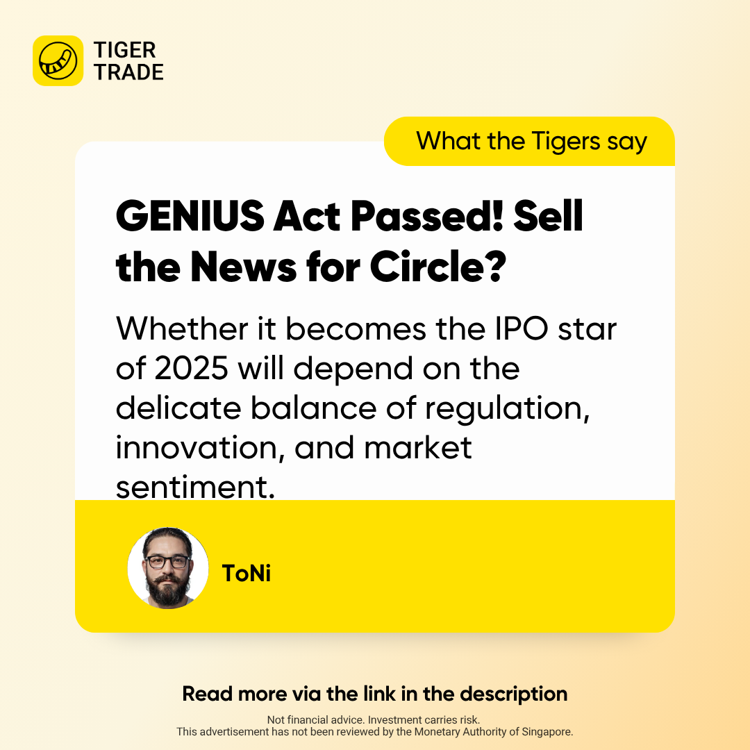 GENIUS is a genuine step forward for the U.S. crypto ecosystem. But markets are forward-looking—and fast-moving. If you're holding Circle, ask yourself: are you in for regulation upside, or are you chasing momentum that may already be fading?