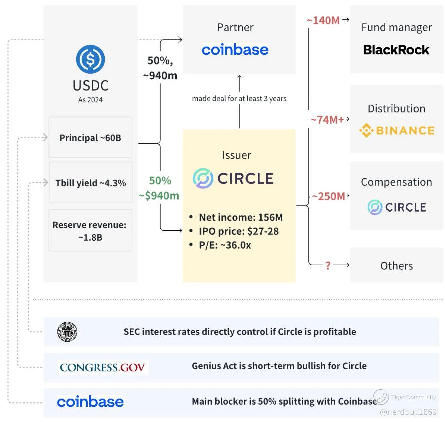 If we looked back at the pre-IPO analysis, we are considering factors like the Genius Act which is short-term bullish for Circle, and also main blocker is 50% splitting with Coinbase.