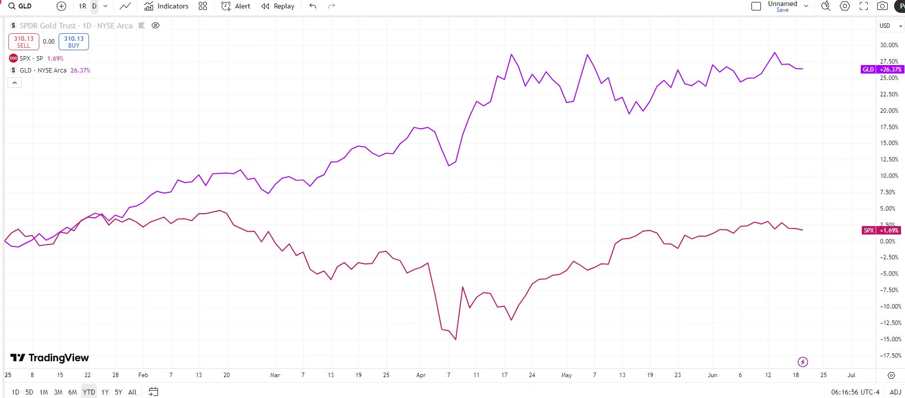 So far in this year, $SPDR Gold Shares(GLD)$ etf has outperformed the $S&P 500(.SPX)$ a large amount or %. On pace for its best year since 1979.