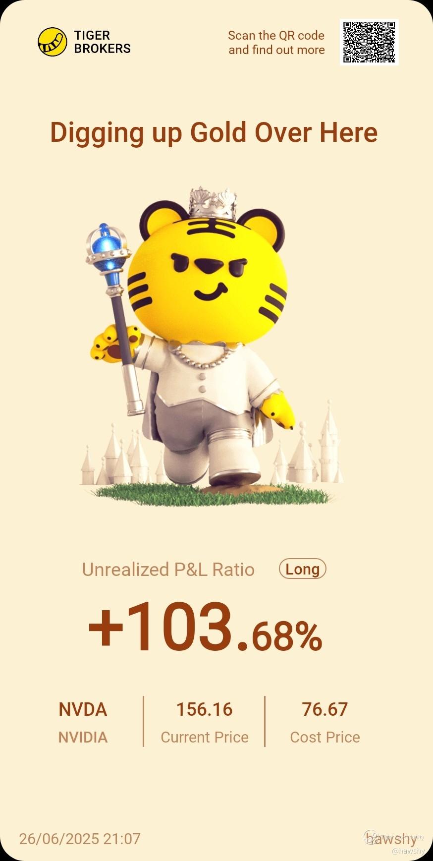 $NVIDIA(NVDA)$ should have average up when it touch 100 recently. But still happy it's double now. [Smile] [Happy]